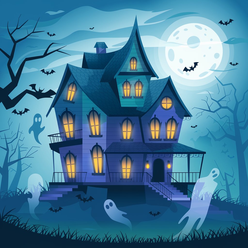 - Haunted House on the Hill: Illustrate a house with ghostly lights, misty shadows, and darkened windows. Try experimenting with lighting effects to create an eerie atmosphere.