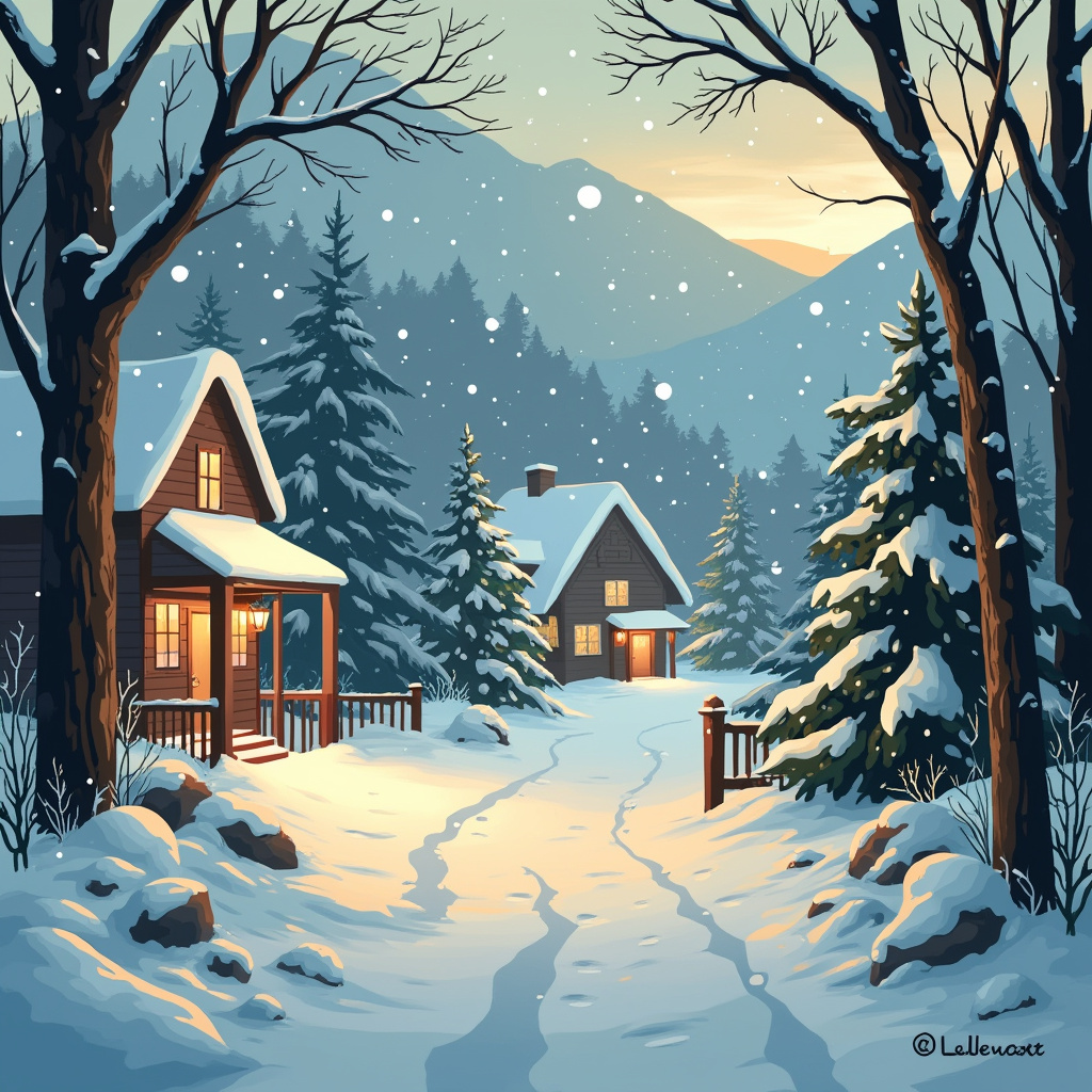 - Winter Wonderland Scene: Illustrate a peaceful snowy village or forest scene. Play with lighting and shadows to create a frosty atmosphere.
